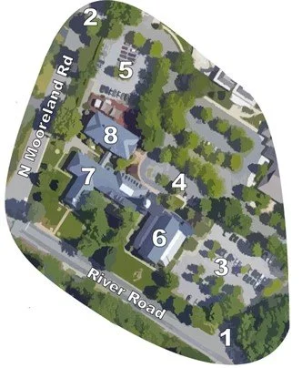 Our 11:00 a.m. Traditional Worship service is held in the Sanctuary (6). Handicap accessible parking is located in the East parking lot (3).